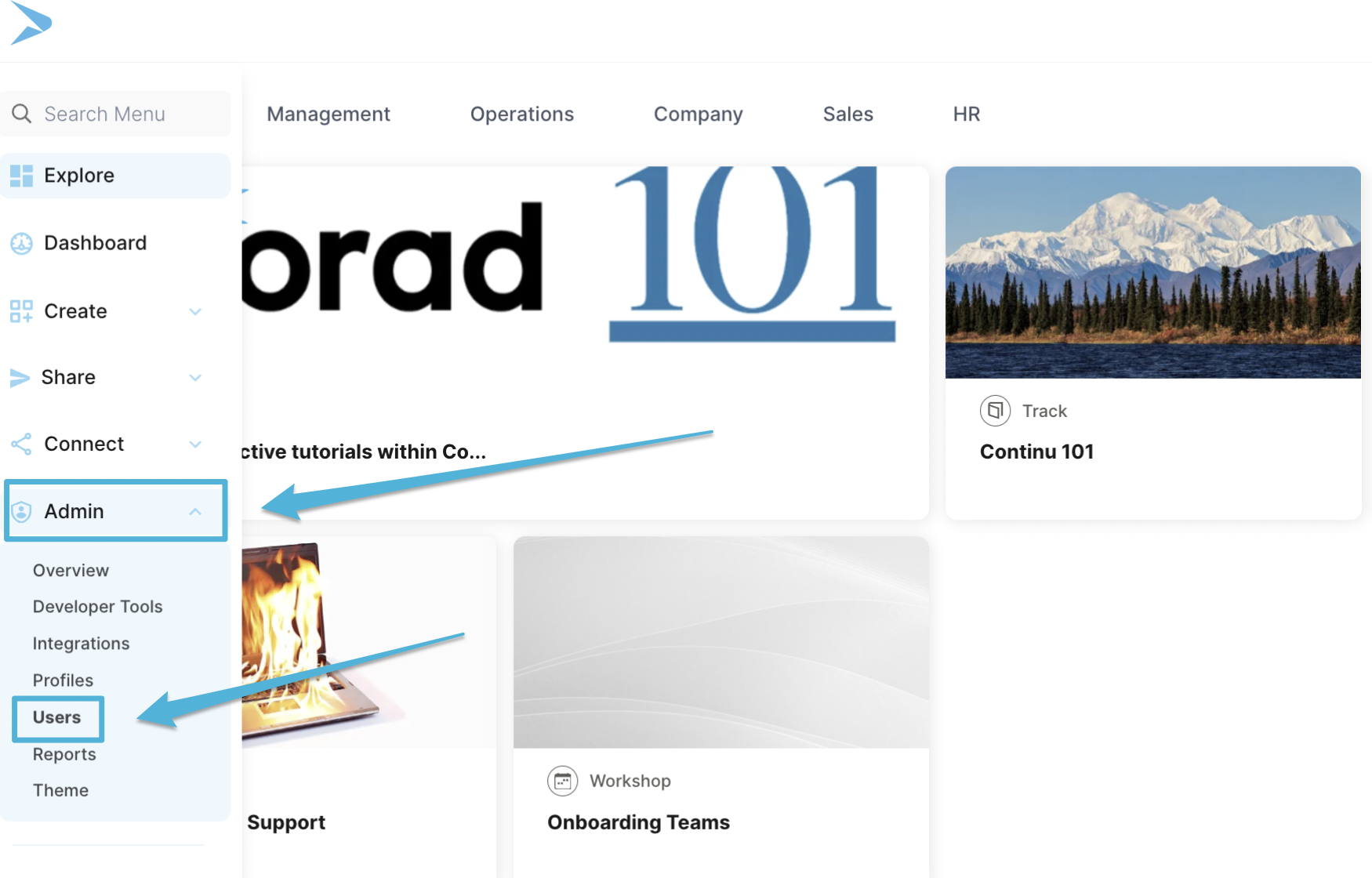 1. Via the left hand navigation, click Admin followed by Users